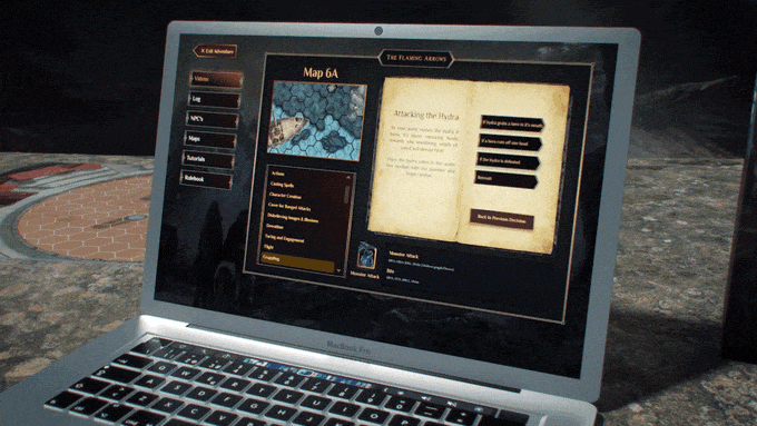 Loremaster doesn't need any time to prep the session - it's always ready! The Gathering Darkness campaign lives in Loremaster, so setup is simple when you're ready to play. Pericle's Game Master app tells the story, plays ambient music, and leads heroes through the treacherous journey. When the time comes for combat, Loremaster will indicate which tabletop map to use and where to place enemy figures.